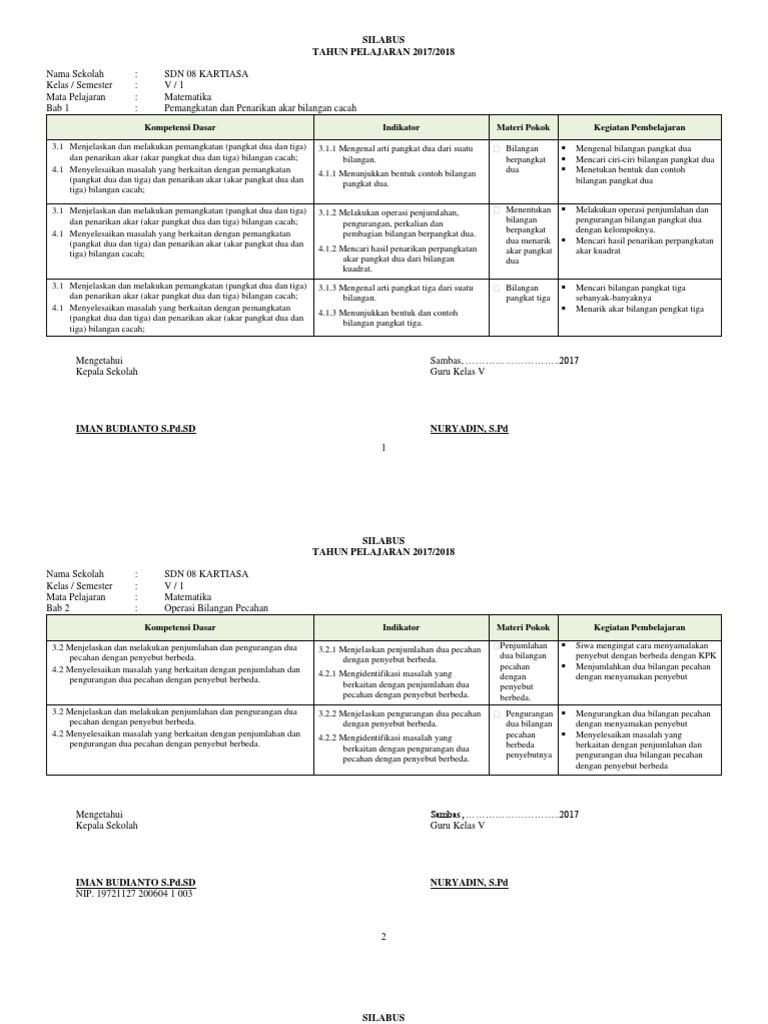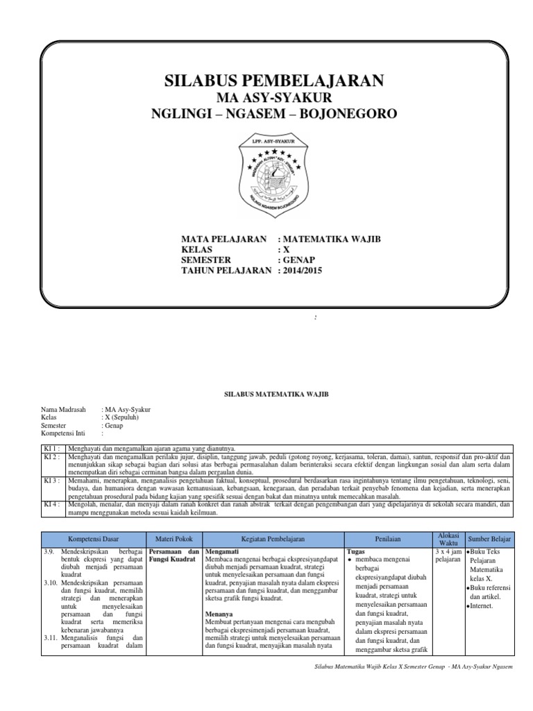Sesuai dengan judul postingan diatas download silabus smp/mts k13 sesuai revisi terbaru mata pelajaran matematika dan yang ingin mendownloadnya bisa di download pada pilihan dibawah ini. Silabus tematik terpadu sd/mi disusun terpisah dengan dokumen ini sebagai acuan dalam menyusun perencanaan pembelajaran dan pelaksanaan berikut ini merupakan pembelajaran untuk kompetensi pengetahuan dan kompetensi keterampilan mata pelajaran matematika kelas ii sd/mi revisi 2017. Silabus matematika kelas 4 k13 (3 kolom) silabus mtk kelas 4 semester 1 k13, unduh silabus mtk kelas 4 semester 2 k13, unduh. Selama beberapa tahun belakangan silabus ini masih digunakan walaupun mengalami revisi namun secara garis besar masih sama. Silabus digunakan untuk menyebut suatu produk pengembangan kurikulum berupa penjabaran lebih lanjut dari standar kompetensi dan kemampuan dasar yang ingin dicapai.