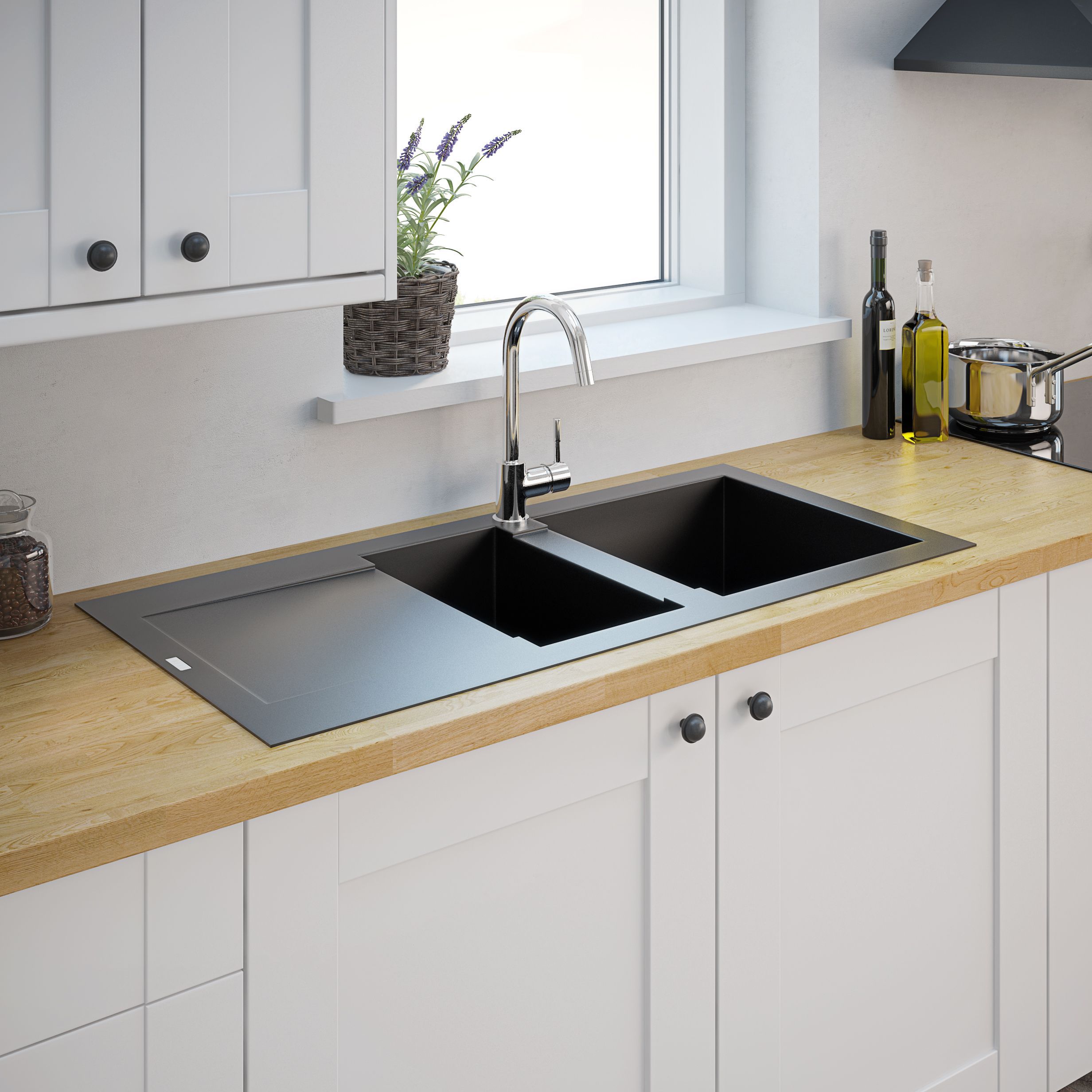 Cooke Lewis Ising Black Resin 1 5 Bowl Sink Drainer Diy At B Q from media.diy.com Black single kitchen sink vegetable washing basin sink kitchen black stainless steel pia black sink black drainer. Nowadays, kitchen sinks come in a variety of shapes, sizes, and finishes, from traditional stainless steel and porcelain to more modern copper and black to give your kitchen a modern appearance, consider the kraus forteza granite sink, which has a sleek black granite design that's perfect for. 2020 burnished gunmetal black stainless steel kitchen sink r10 hand made pantry. Only £169.97 or £8.16 a month. Whether you're updating your entire kitchen or just replacing an old sink, we have a large selection of styles, materials and finishes. Got a question or need a little help with something? French region shutters are sometimes a excellent choice also. Wickes kitchen sinks fit any kitchen style and come in left, right and reversible layouts.